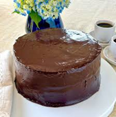 Description: May West Cake. Based on the classic Canadian snack cake. A light moist white cake filled with creamy vanilla buttercream frosting and covered in a thin layer of chocolate.